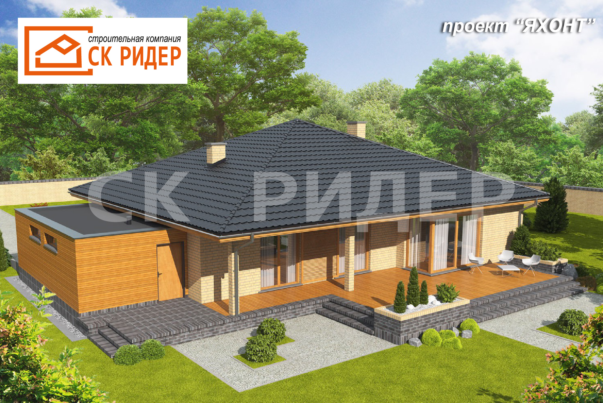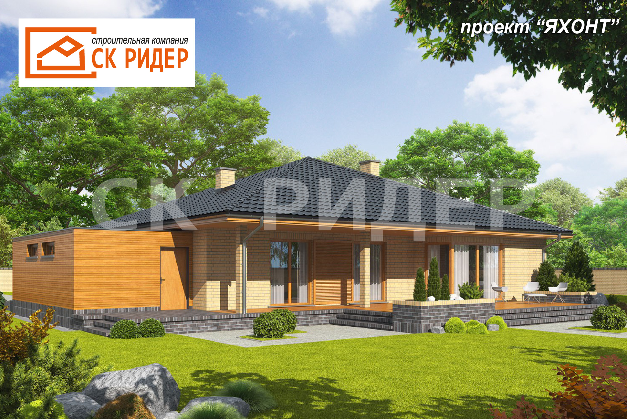 - Яхонт — это предложение для тех кто ценит классику, приправленную оригинальными штрихами. Удачная композиция материалов, используемых на фасаде, создает впечатляющий визуальный эффект. Шикарная облицовка кирпичом гармонично сочетается с теплым оттенком дерева, который окутывает выбранные элементы здания и гаража. Внутри, домочадцев ждет просторный и уютный интерьер с гибкой функциональной планировкой, которая легко вписывается в ритм жизни семьи. Привлекательной частью дома является раскидистая терраса с колоннами.