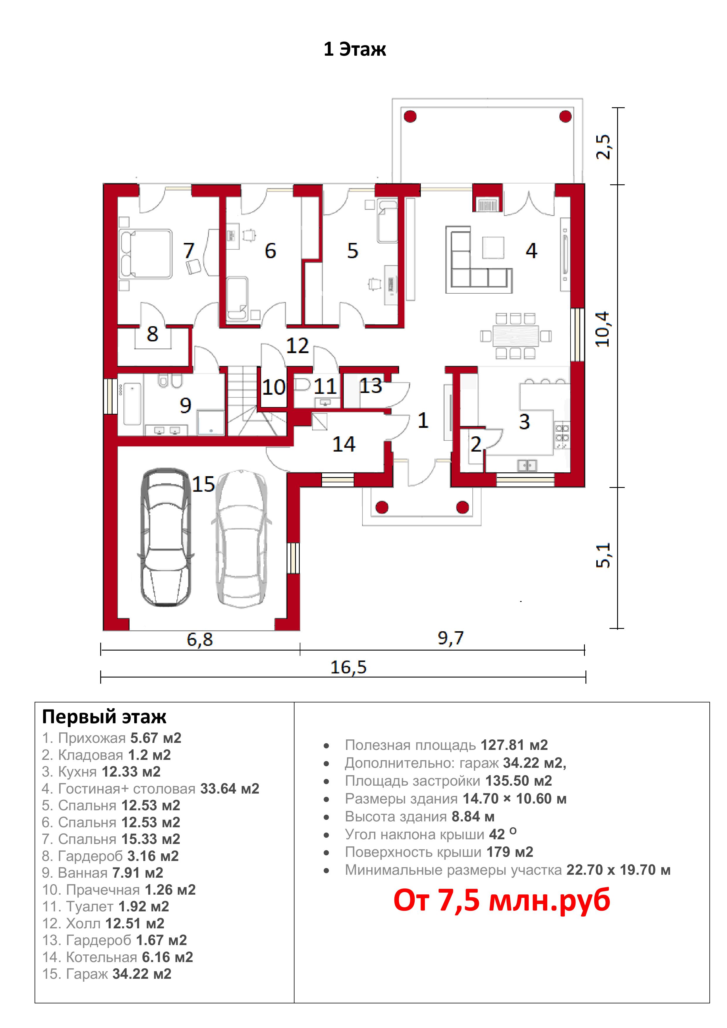 Проект «Жемчуг» представляет собой одноэтажный дом, с чердаком, который благодаря адаптации может быть выделен для использования под жилые комнаты. С фасада пристроен гараж, где поместятся две машины. Фасад дома отличается навесом над входной дверью, поддерживаемым колоннами, а со стороны сада презентабельным элементом является навес над террасой, а также большое остекление гостиной. Все помещения, включенные в проект, расположены на первом этаже дома. Чердак может быть адаптирован к потребностям жителей, создав дополнительные две комнаты, ванную комнату и мезонин над гостиной, пространство над гаражом, использовано как дополнительный хозяйственный чердак. Архитектура дома создает элегантный дом с вневременным видом.